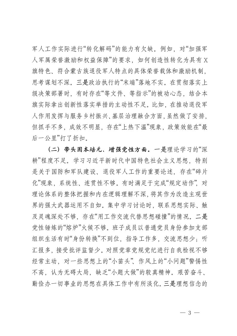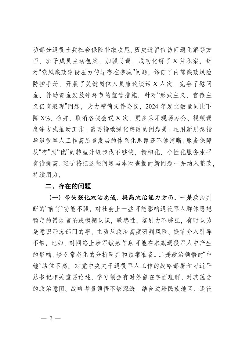 标题:退役军人事务局党组班子2025年度民主生活会对照检查材料