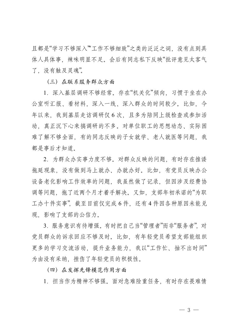 通用在学习贯彻党的创新理论在加强党性锤炼在联系服务职工群众在发挥先锋模范作用在改作风树新风在落实意识形态责任制六个方面组织生活会存在的不足
