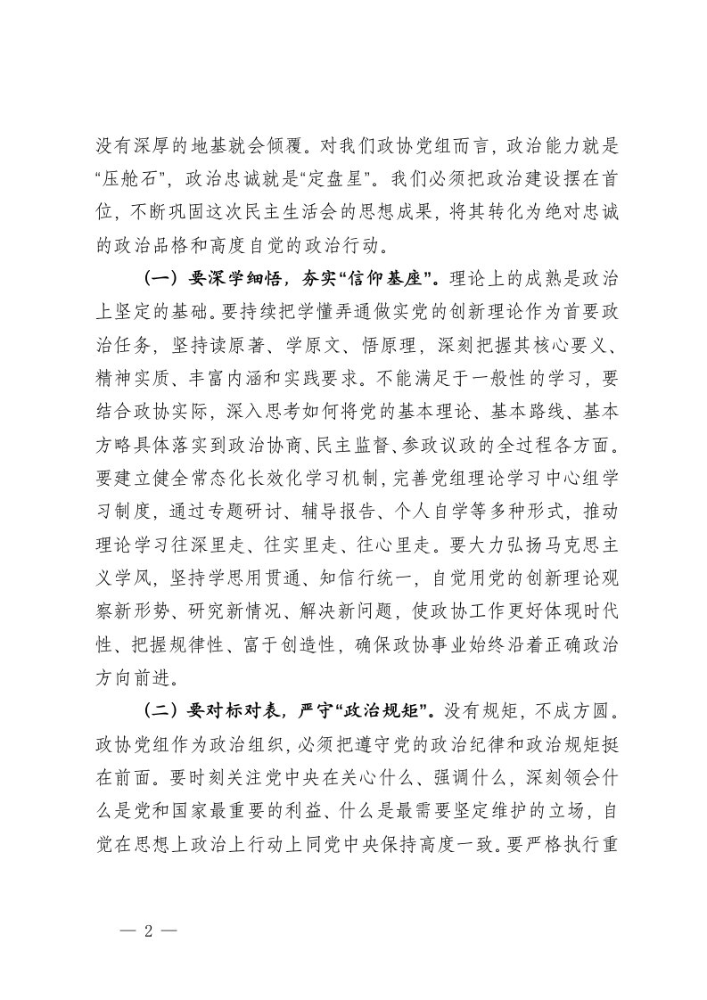 标题:市政协党组班子2025年度民主生活会民主生活会上的总结讲话