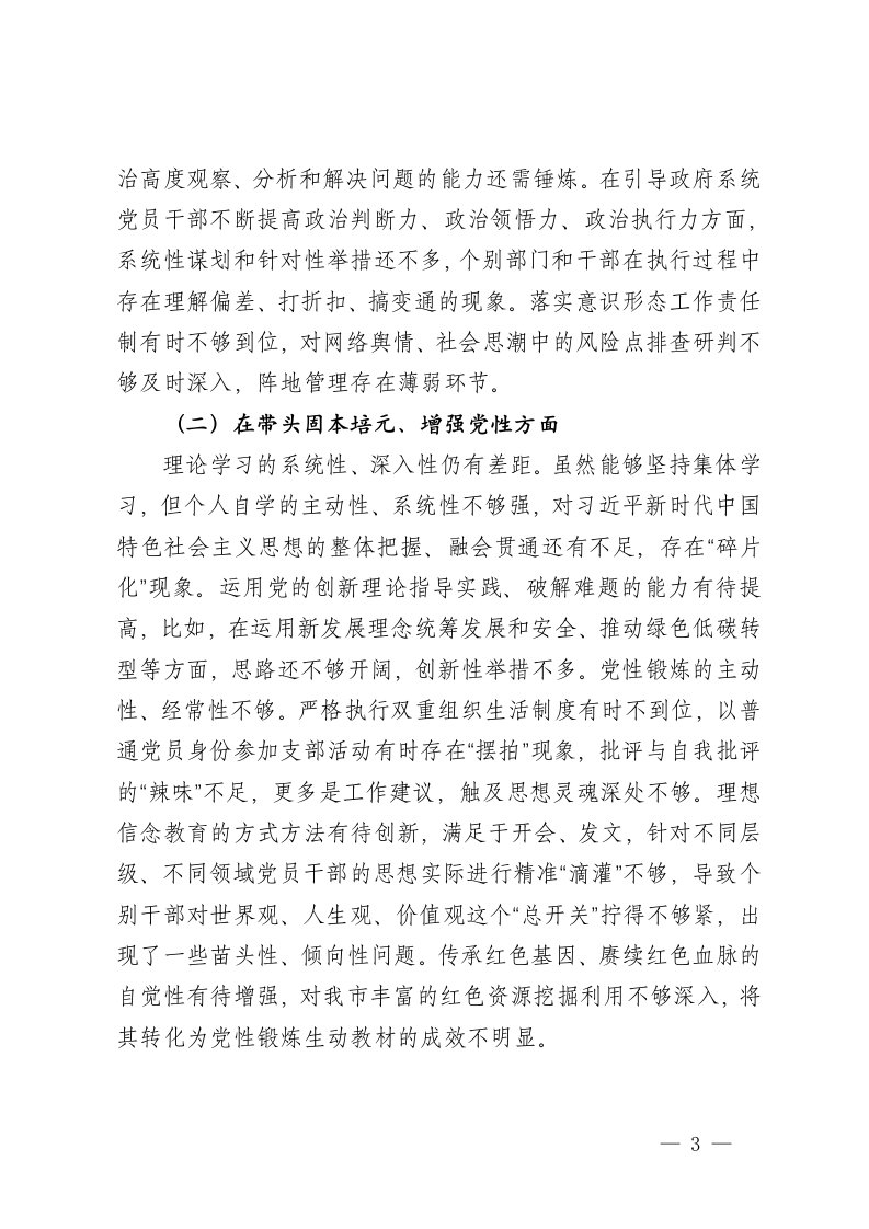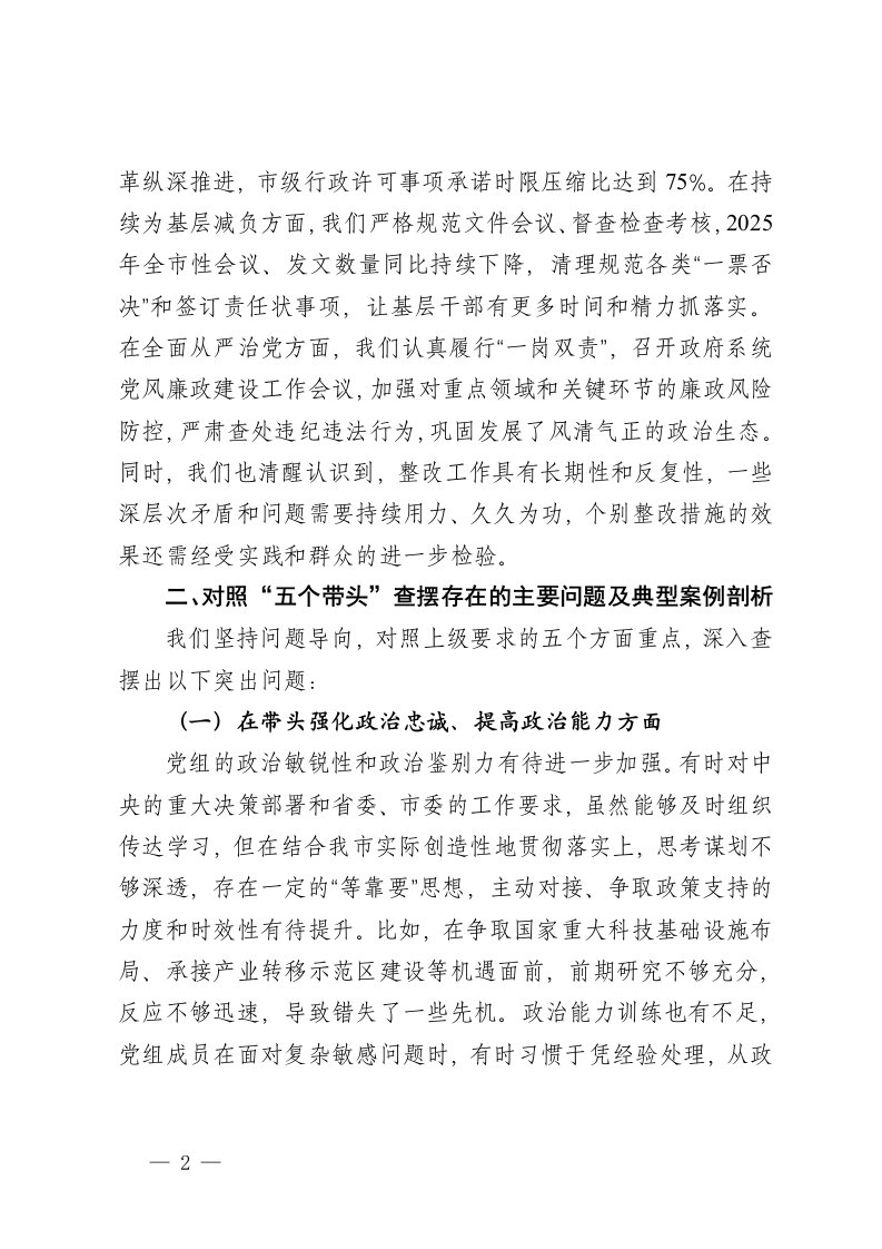 标题:市政府党组班子2025年度民主生活会对照检查材料五个带头