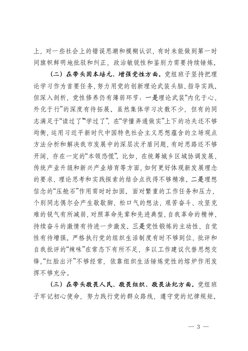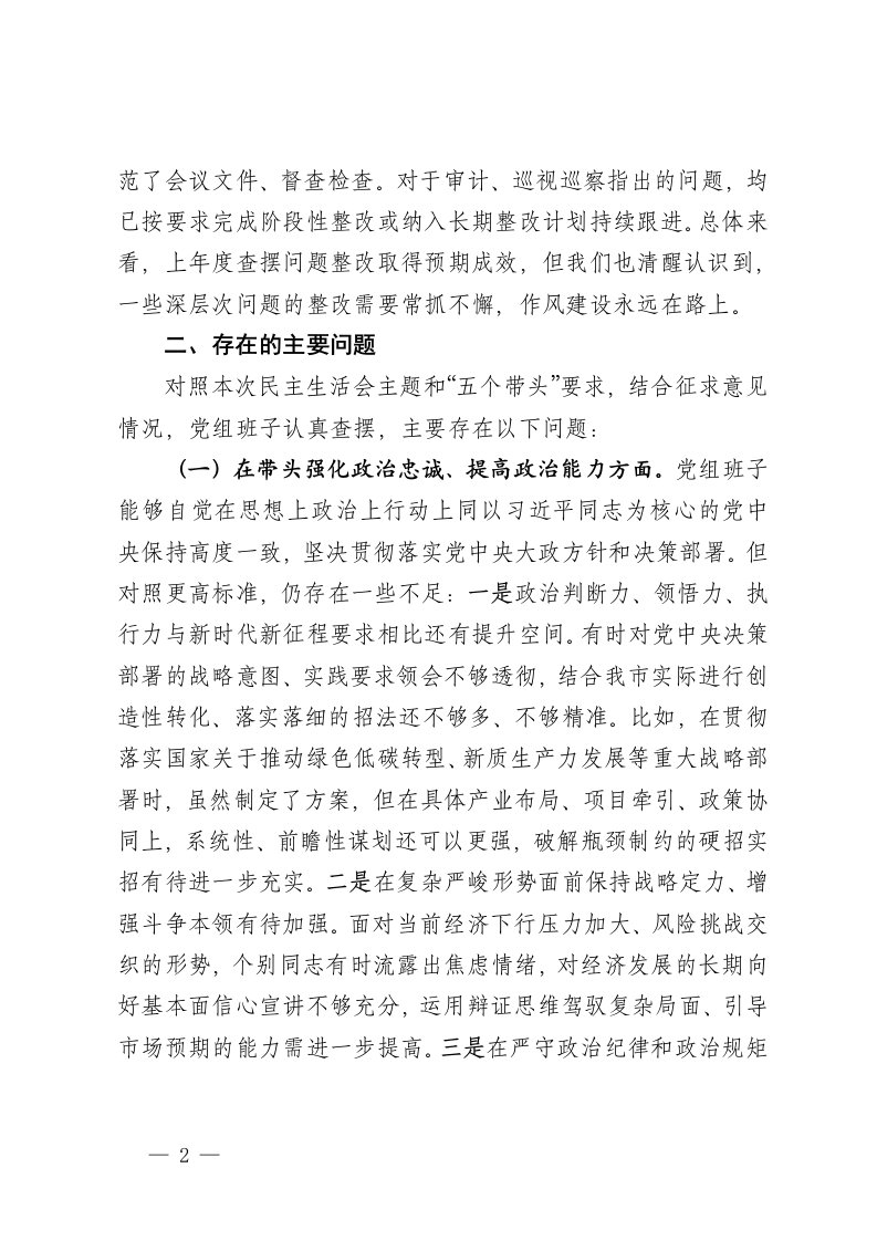标题:市政府党组班子2025年度民主生活会对照检查材料