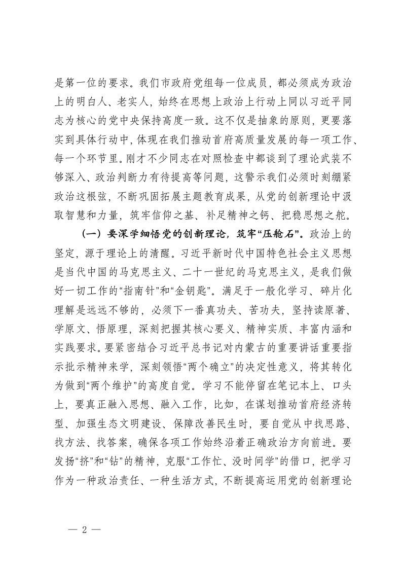 标题:市长在市政府党组2025年度民主生活会上的总结讲话