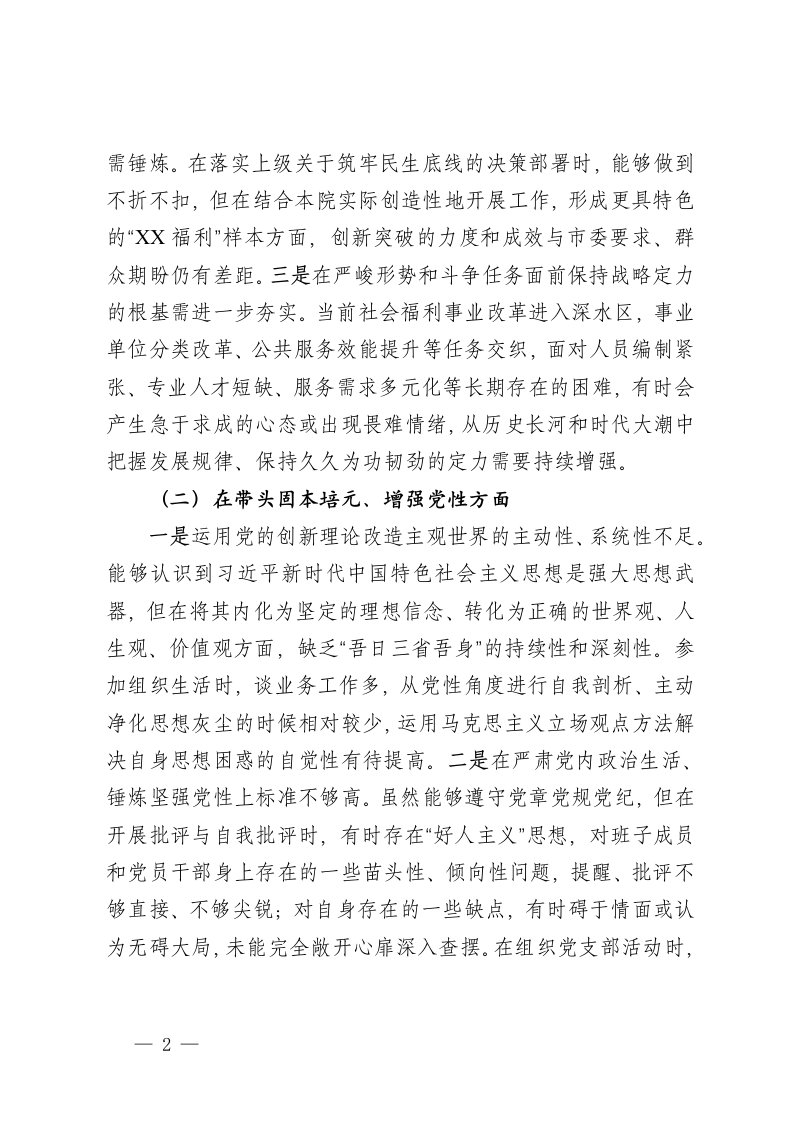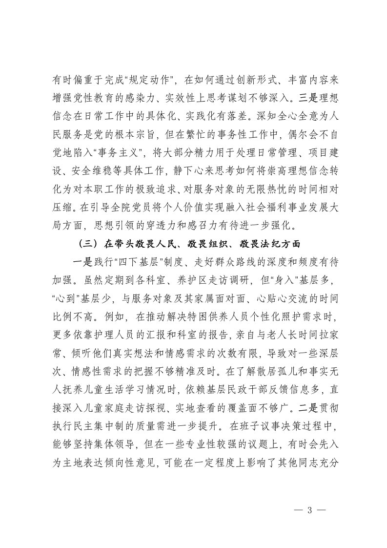 市社会福利院党委书记2025年度民主生活会个人对照检查材料五个带头