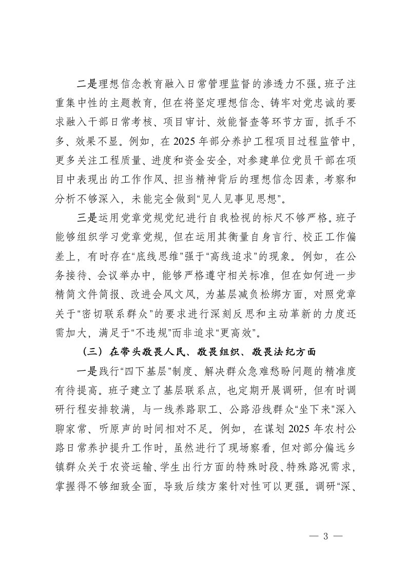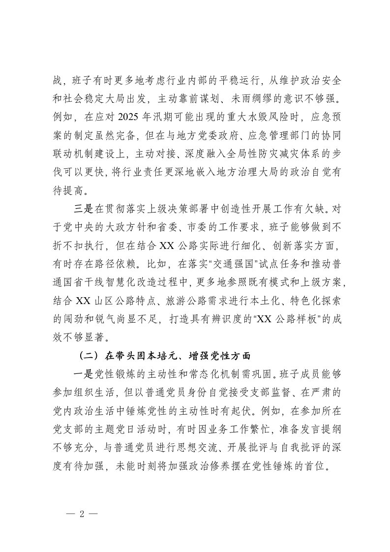 标题:市公路管理局领导班子2025年度民主生活会对照检查材料五个带头