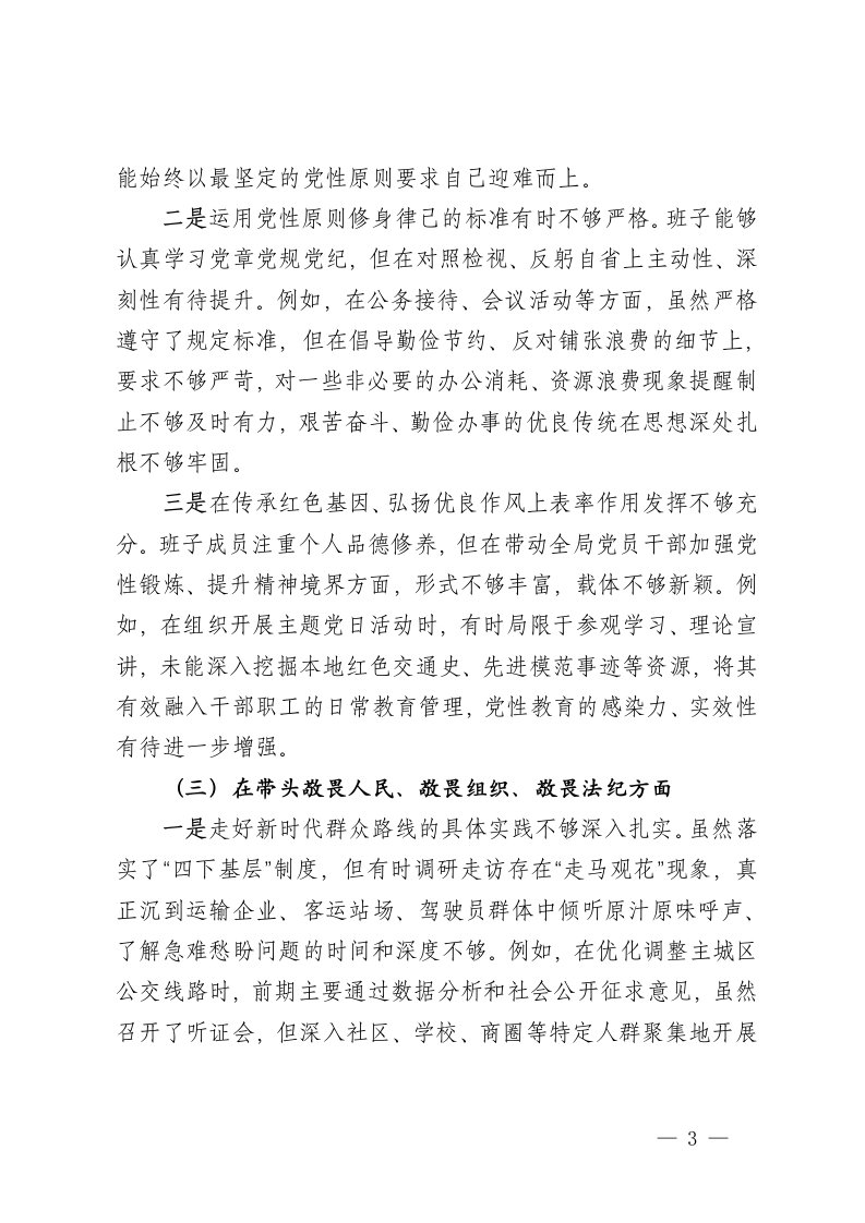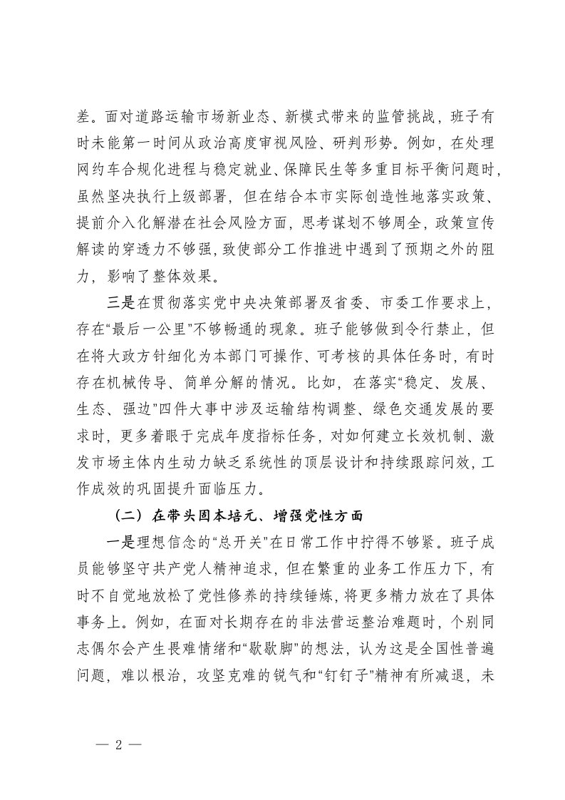 标题:市道路运输管理局领导班子2025年度民主生活会对照检查材料五个带头