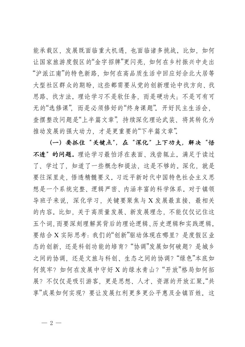标题:区委督导组组长在镇2025年度民主生活会上的指导讲话