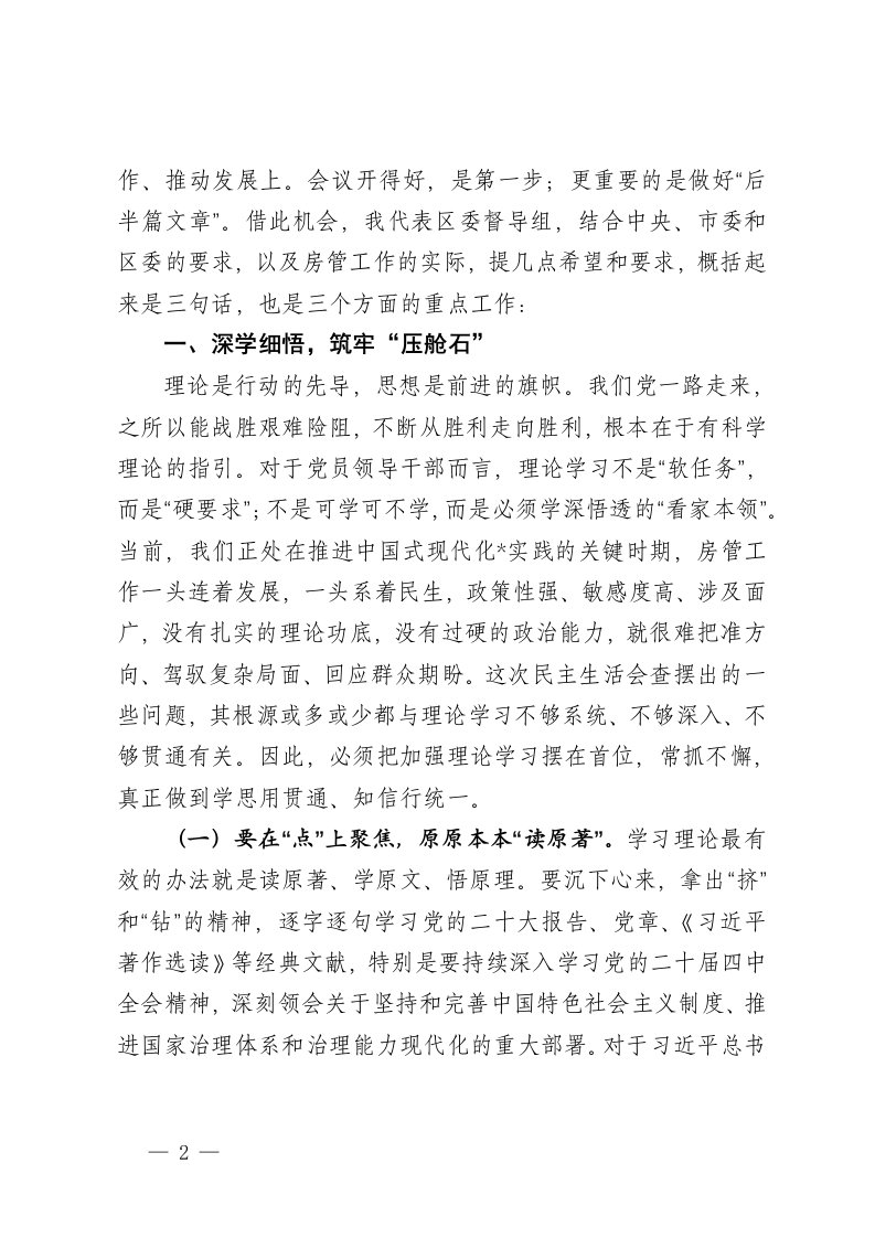标题:区委第六督导组组长在2025年度党员领导干部民主生活会上的指导讲话