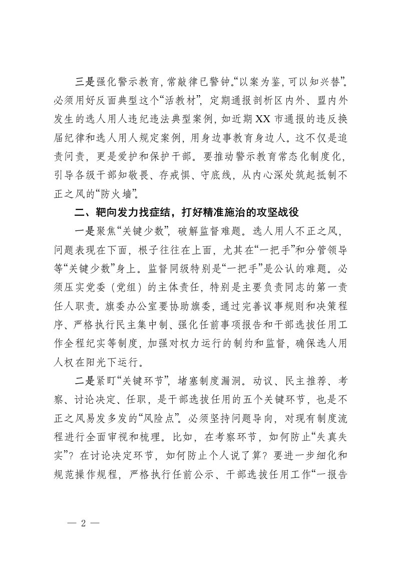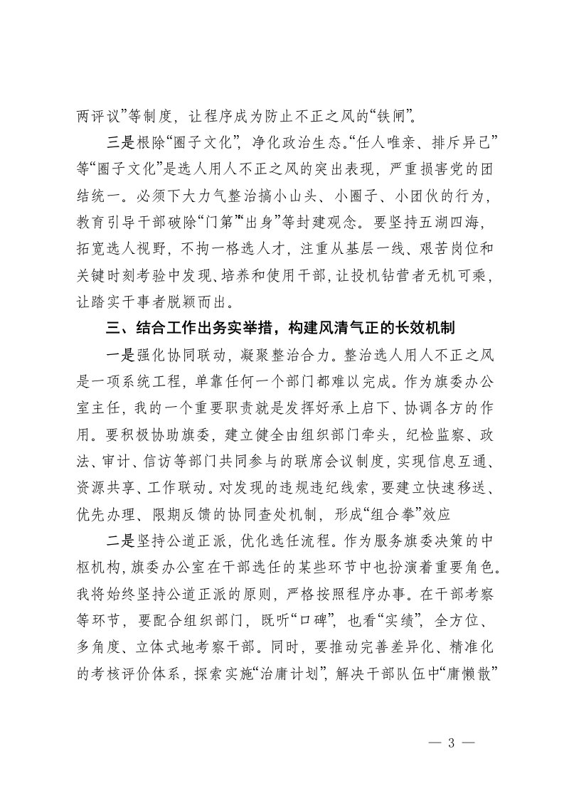 标题:旗委办主任选人用人不正之风集中整治研讨发言材料