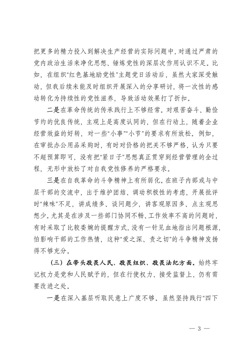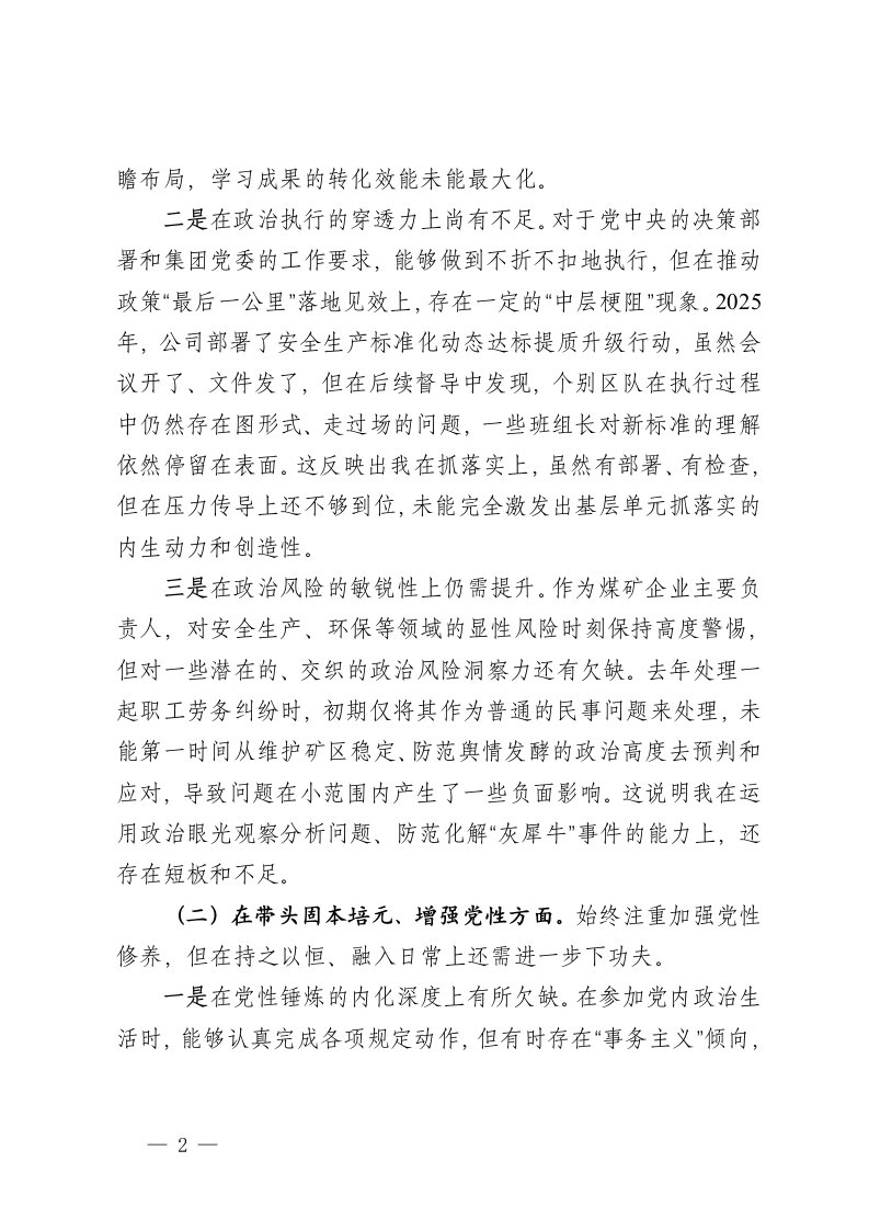 标题:煤业党总支书记执行董事经理2025年度民主生活会个人对照检查材料