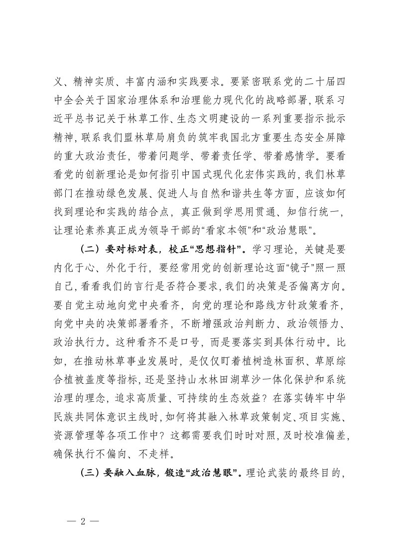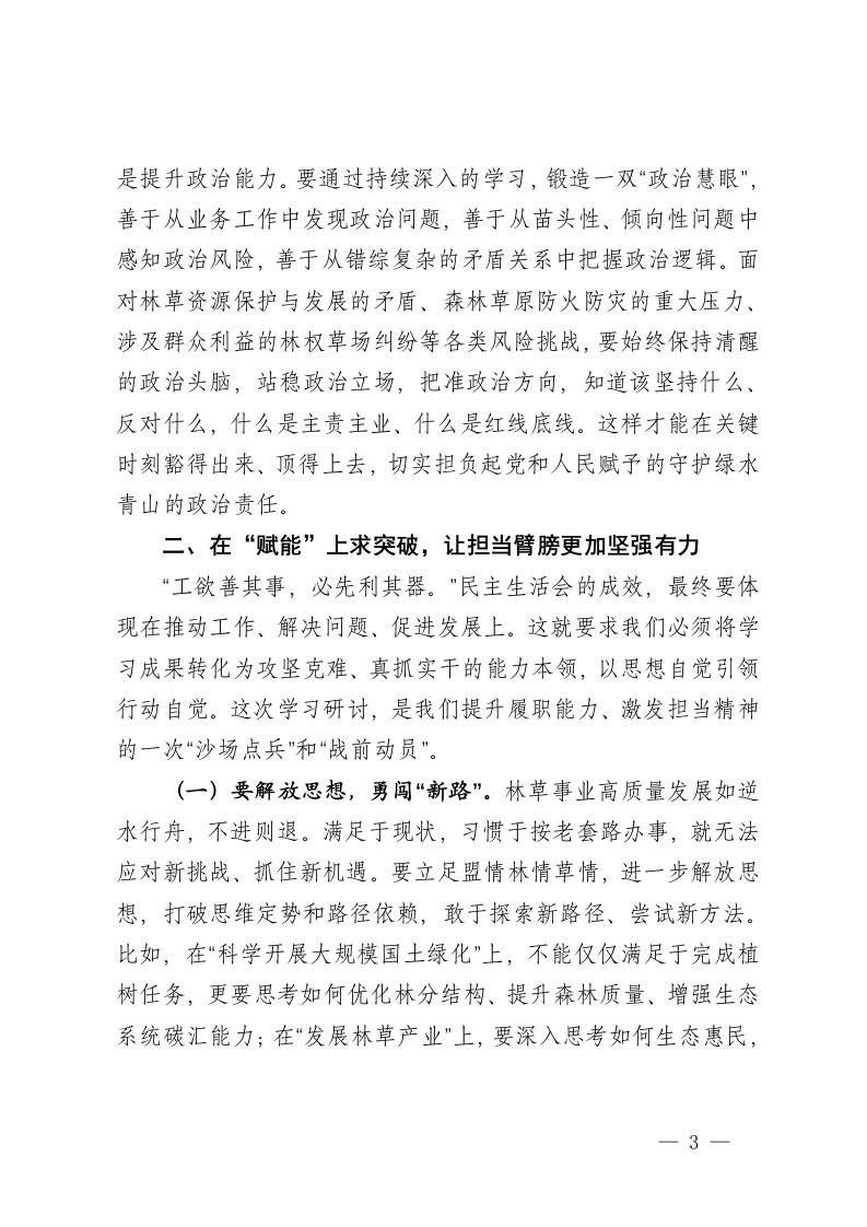 标题:林草局党组书记在2025年度民主生活会前集中学习研讨会上的讲话