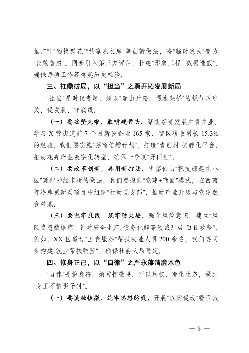标题:街道党工委书记在领导班子2025年度民主生活会上的总结讲话