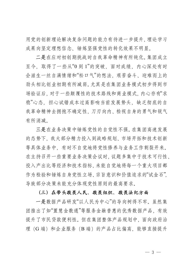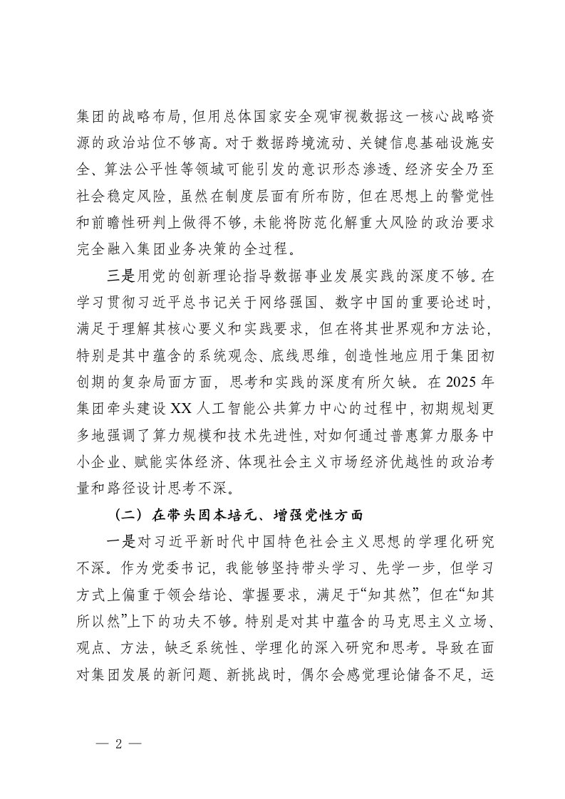 标题:集团有限公司党委书记2025年度民主生活会个人对照检查材料