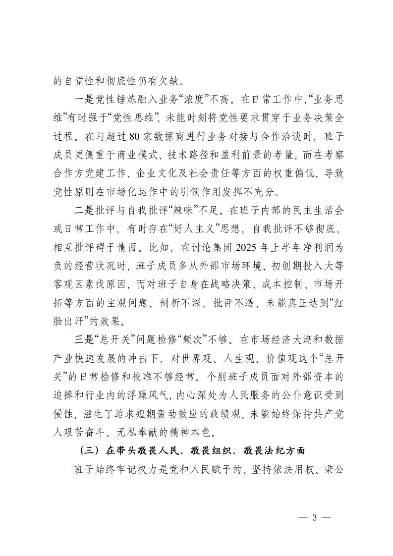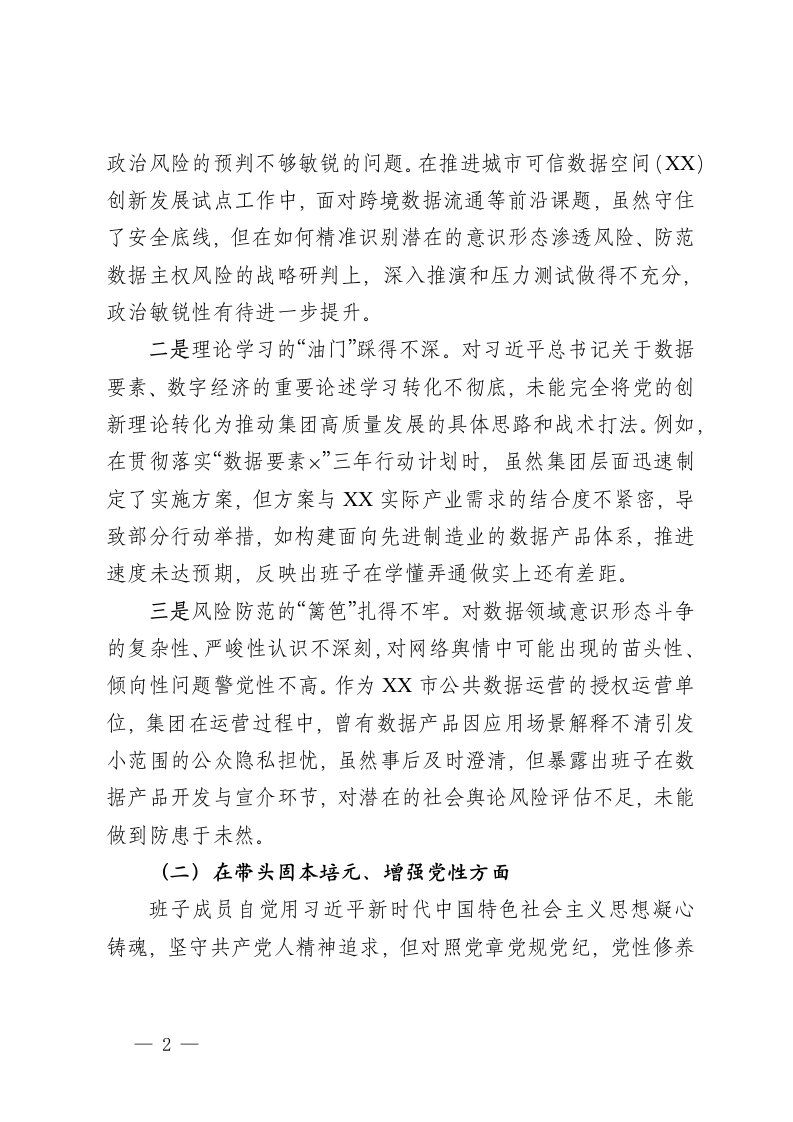 标题:集团有限公司2025年度民主生活会领导班子对照检查材料