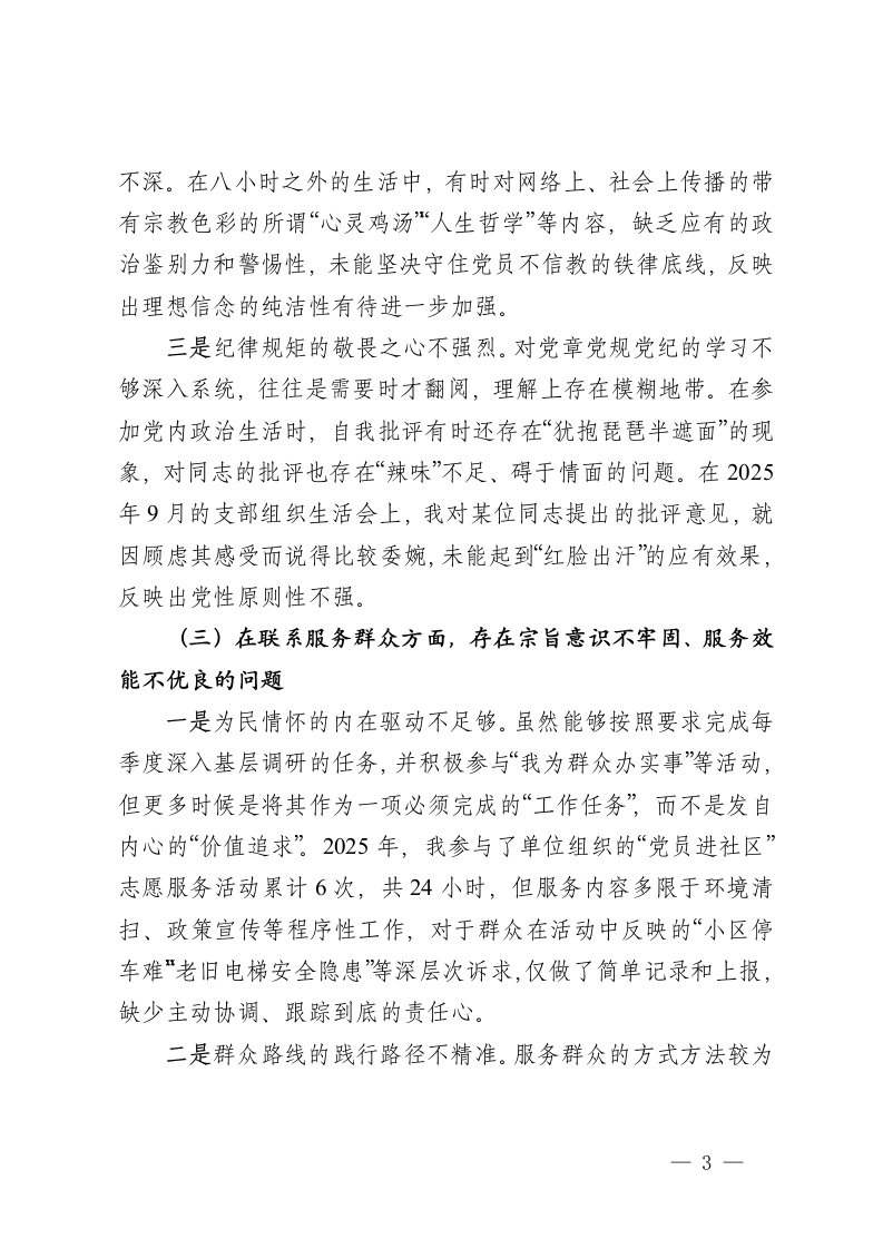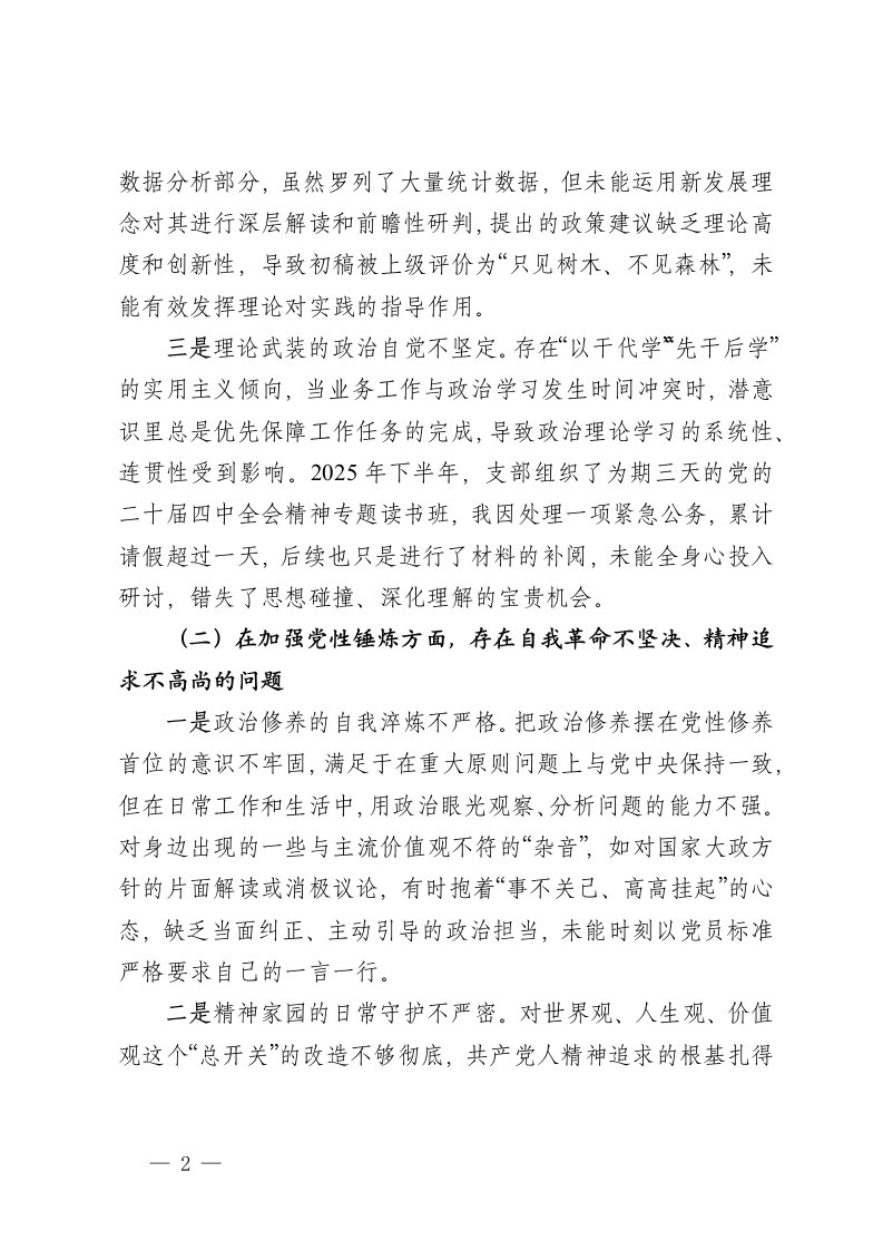 标题:机关党支部2025年度组织生活会个人对照检查材料五个对照