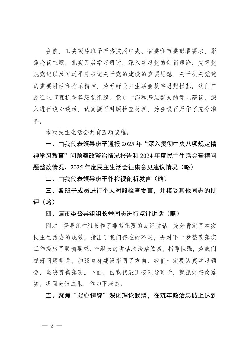 标题:汇编在领导班子2025年度民主生活会上的主持词含表态发言