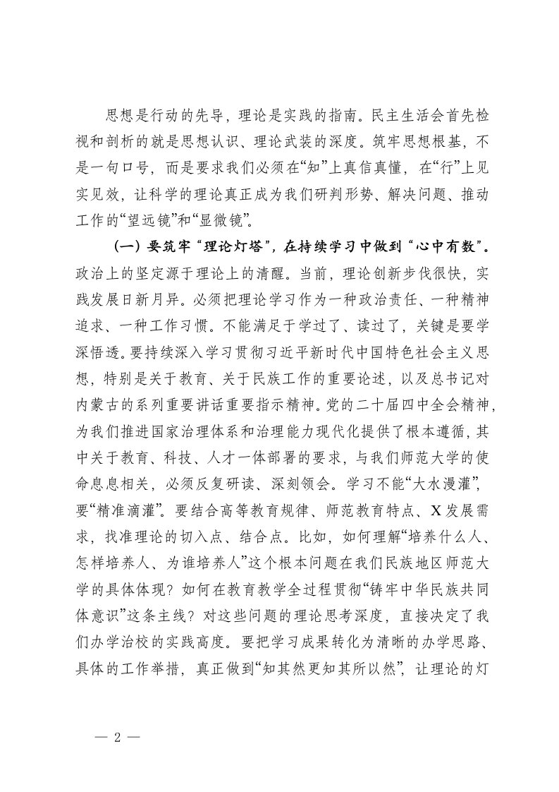 标题:督导组组长在大学党委2025年度民主生活会上的指导讲话