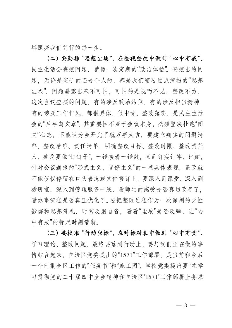 标签: #民主生活会 #讲话 #党委