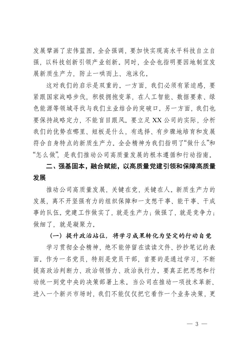 标题:党课讲稿学习贯彻党的二十届四中全会精神以新质生产力推动公司高质量发展