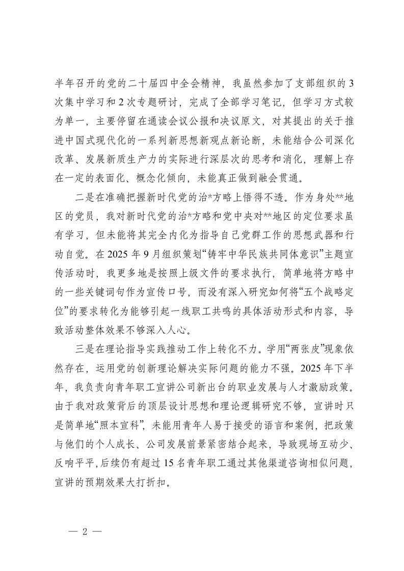 标题:2025年度组织生活会个人对照之在发挥先锋模范作用存在的不足