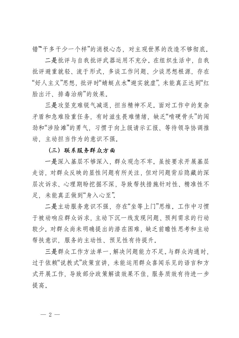 标题:2025年度组织生活会个人对照检查材料