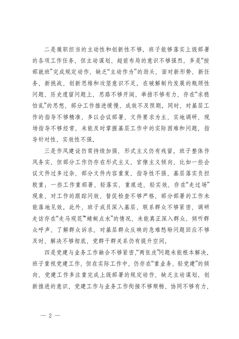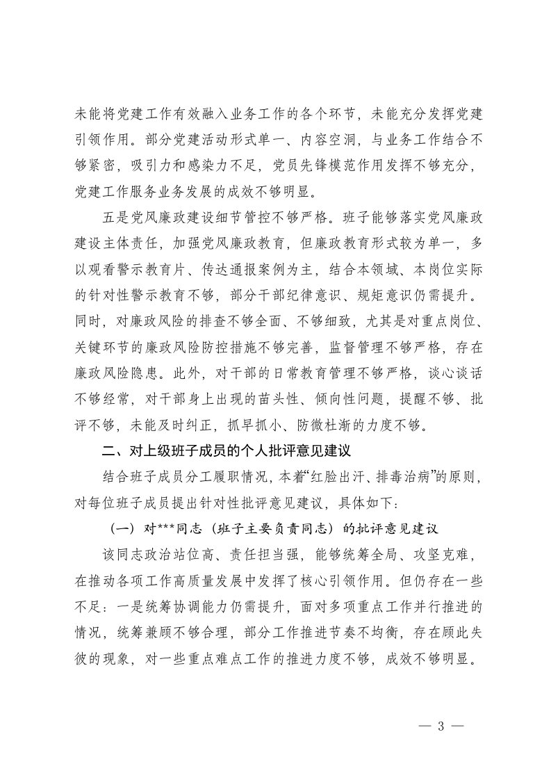 标题:2篇2025年民主生活会对上级班子及成员的批评意见建议