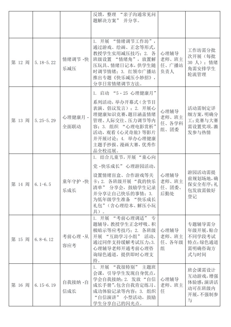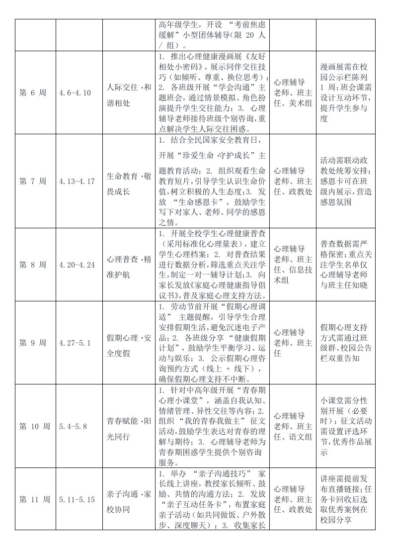 标题:2026年春季第二学期中小学校心理健康工作行事历