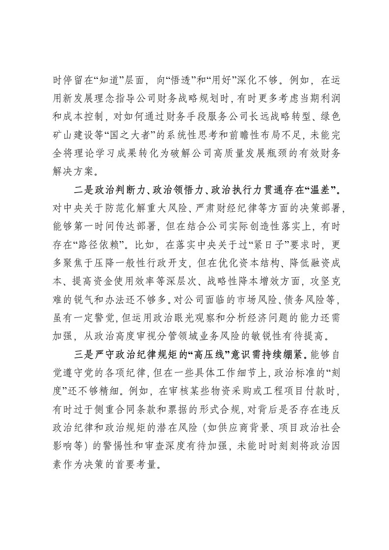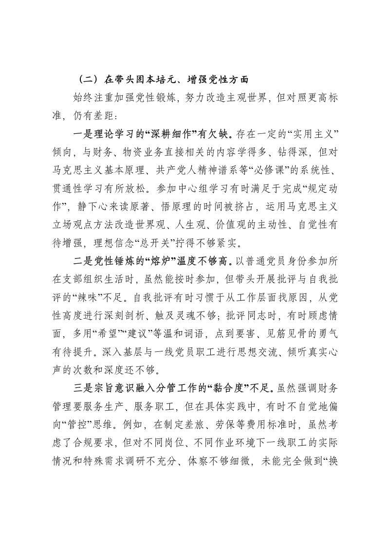 标题:铁矿公司党委委员副总经理2025年度民主生活会对照检查材料