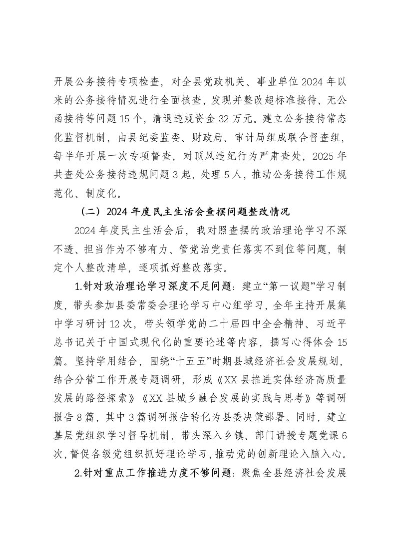 标题:县委书记2025年度民主生活会对照检查材料3