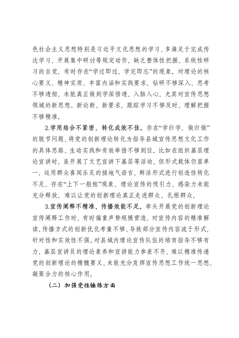 标题:县委宣传部部长2025年度组织生活会对照检查材料2