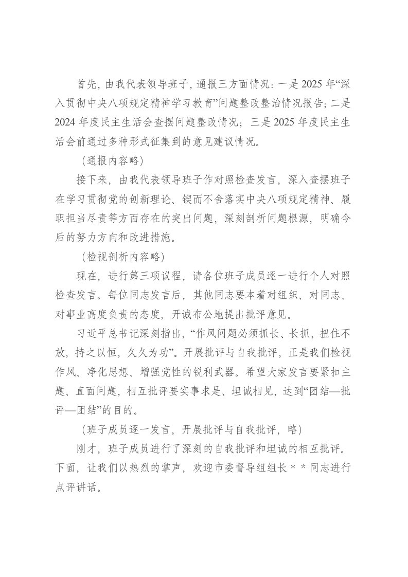 民主生活会,讲话,领导班子,主持讲话,市委,生活在市委政研室领导班子2025年度民主生活会上的主持讲话民主生活会,讲话,领导班子,主持讲话,市委,生活在市委政研室领导班子2025年度民主生活会上的主持讲话