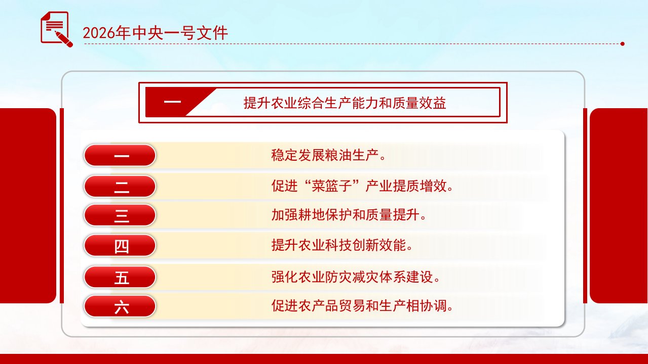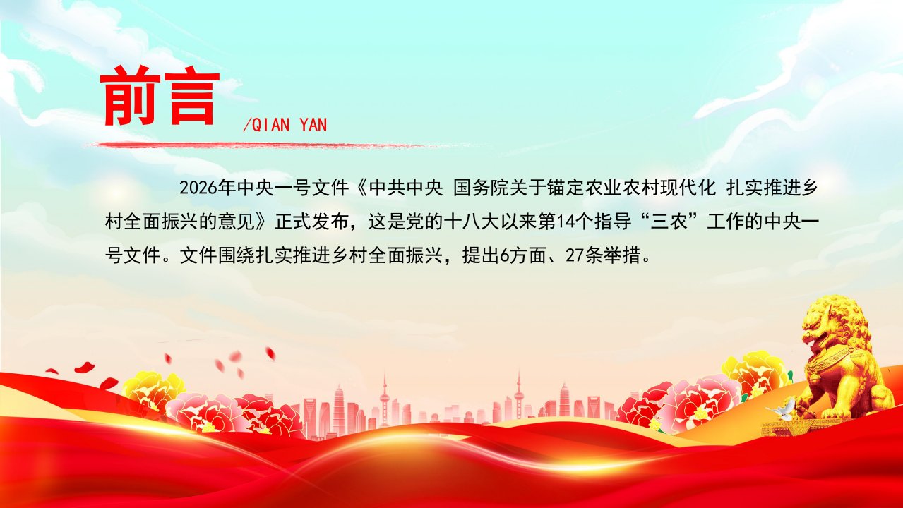 2026微党课「一号文件ppt模板」中央一号文件关于锚定农业农村现代化 扎实推进乡村全面振兴的意见党课ppt模板(带内容)