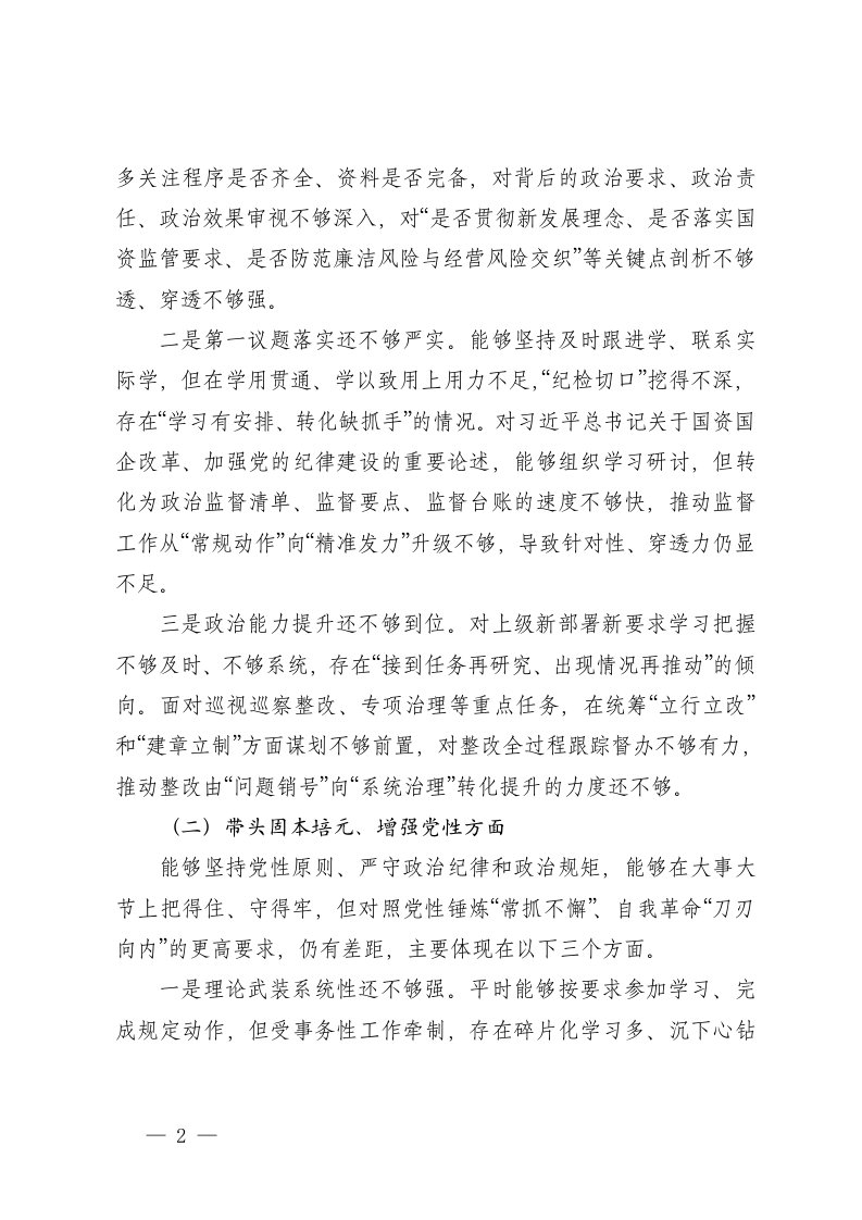 2025年组织生活会党员个人问题...
