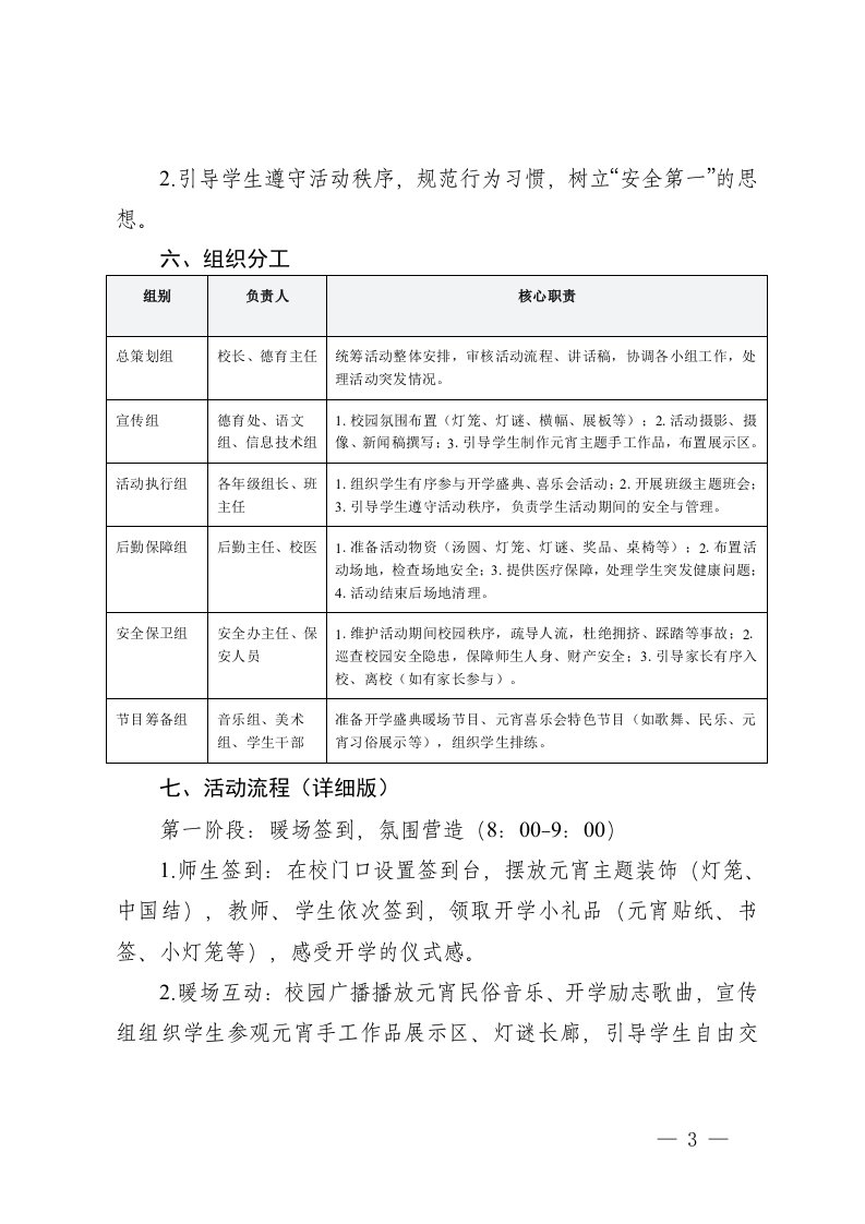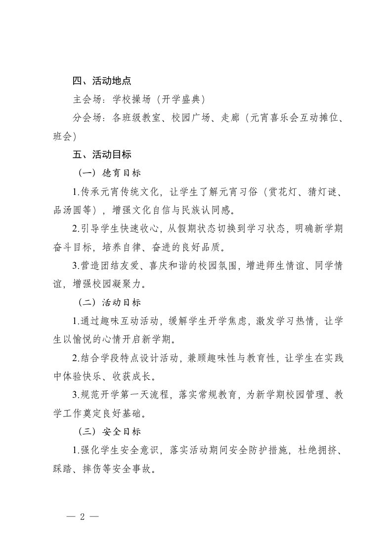 标题:中小学2026年春季学期开学第一天暨元宵喜乐会活动方案