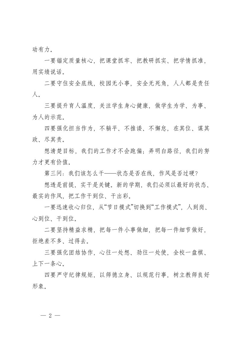 标题:在2026年春季学期教职工大会上的讲话全体教师大会上的讲话