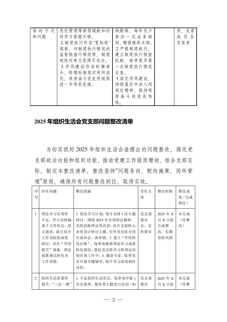 组织生活会,党支部,组织生活,生活2篇2025年组织生活会党支部问题整改清单组织生活会,党支部,组织生活,生活2篇2025年组织生活会党支部问题整改清单