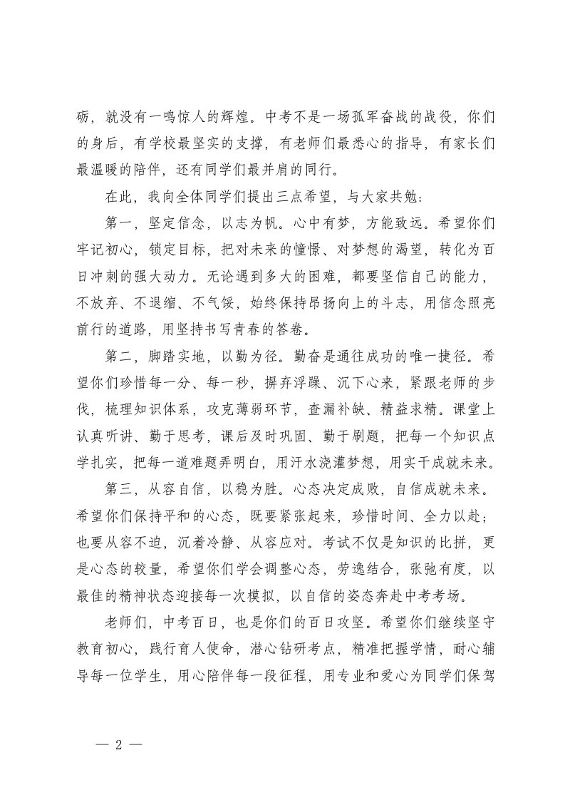标题:2026年中考百日誓师大会校长发言稿3篇