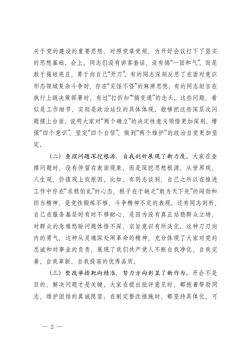 标题:在2025年度组织生活会上的点评讲话3篇