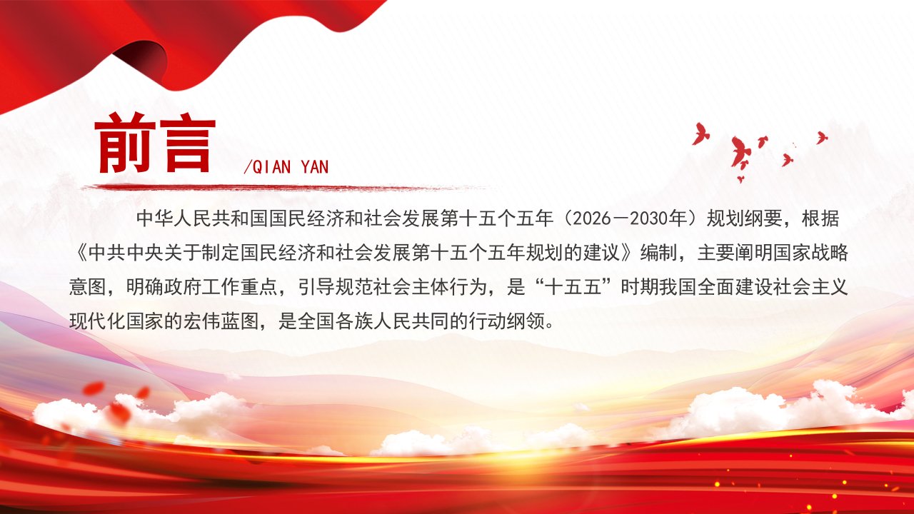 2026微党课「治国理政ppt模板」《中华人民共和国国民经济和社会发展第十五个五年规划纲要(草案)》摘要党课ppt模板(带内容)