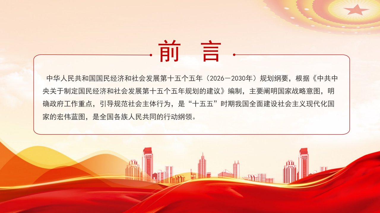 2026微党课「治国理政ppt模板」《中华人民共和国国民经济和社会发展第十五个五年规划纲要(草案)》摘要党课ppt模板(含配套讲稿)