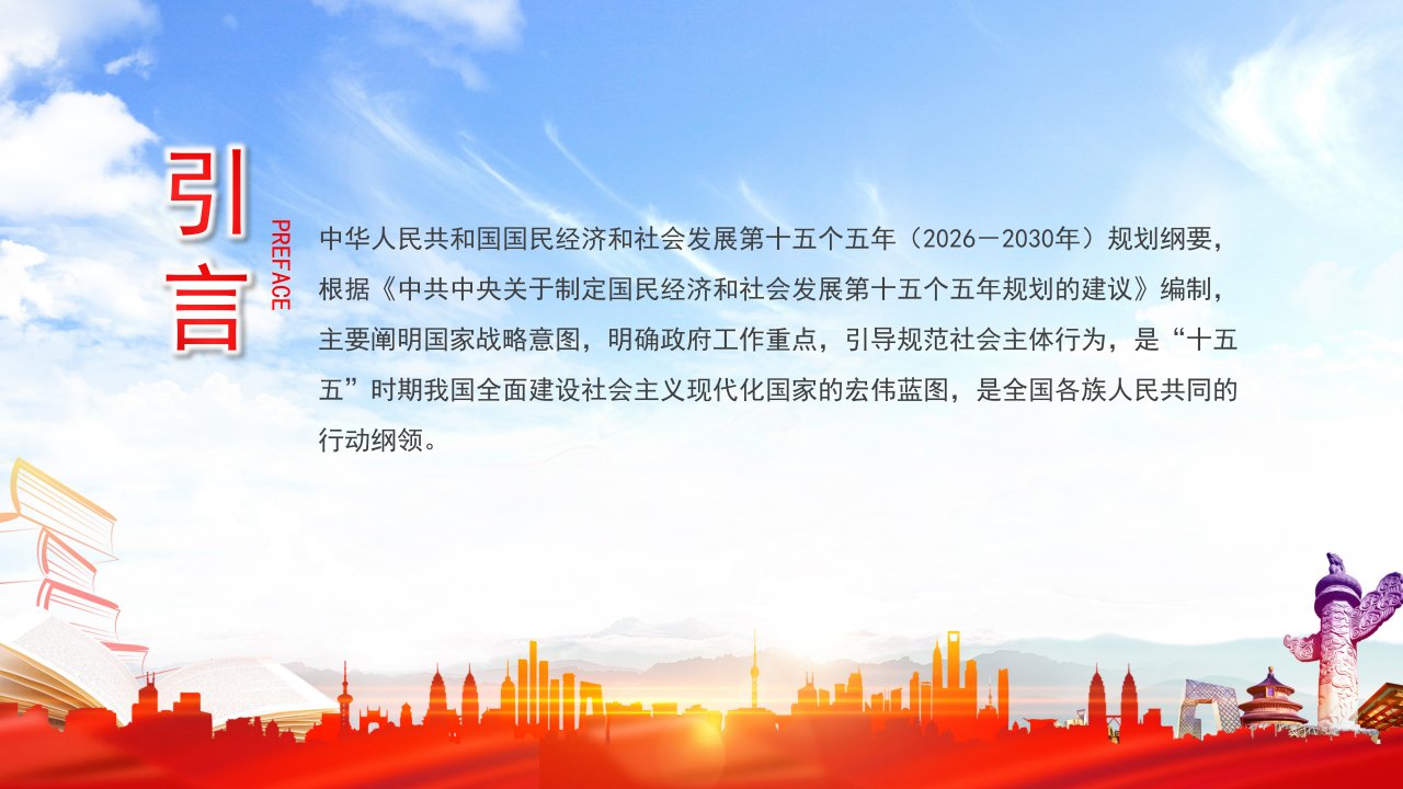 2026微党课「治国理政ppt模板」中华人民共和国国民经济和社会发展第十五个五年规划纲要(草案)摘要党课ppt模板(含配套讲稿)