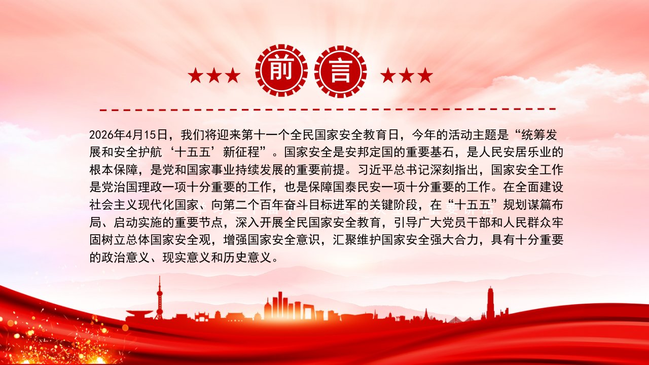 标题:2026微党课「国家安全教育ppt」办好国家安全教育日筑牢国家安全防线党课ppt模板(含配套讲稿)