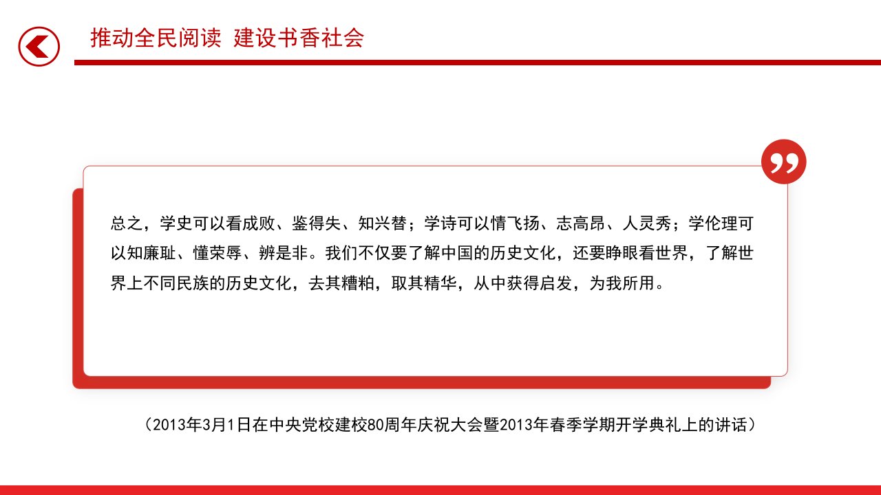 标题:2026微党课「治国理政ppt模板」推动全民阅读建设书香社会总书记重要论述课件党课ppt模板(含配套讲稿)