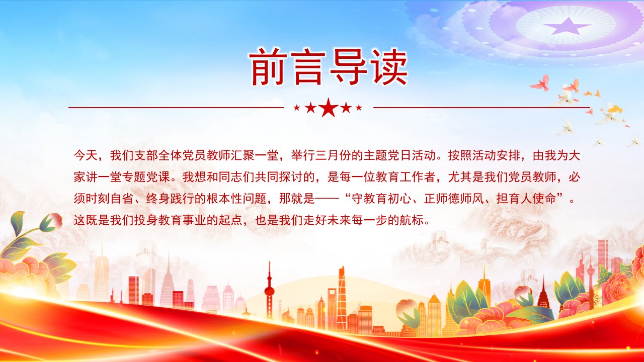 标题:2026微党课「教师师德ppt模板」教师节守教育初心正师德师风担育人使命党课ppt模板(含配套讲稿)