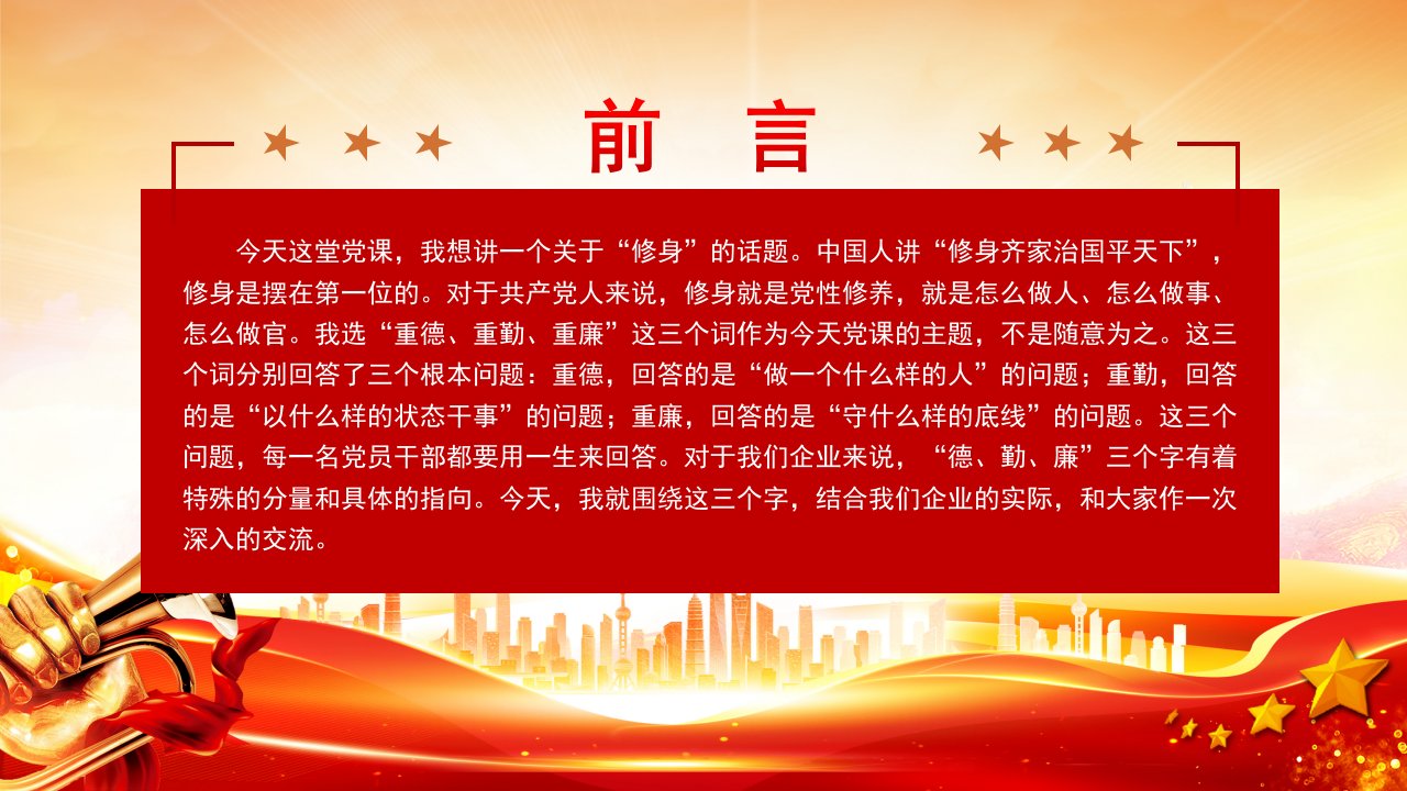标题:2026微党课「党员学习ppt模板」重德、重勤、重廉涵养风清气正的政治生态党课ppt模板(含配套讲稿)