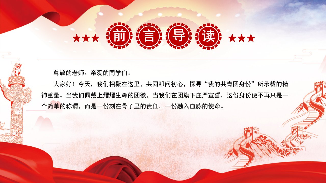 标题:2026微党课「党员学习ppt模板」叩问初心 我的共青团身份五四青年节主题党课ppt模板(含配套讲稿)