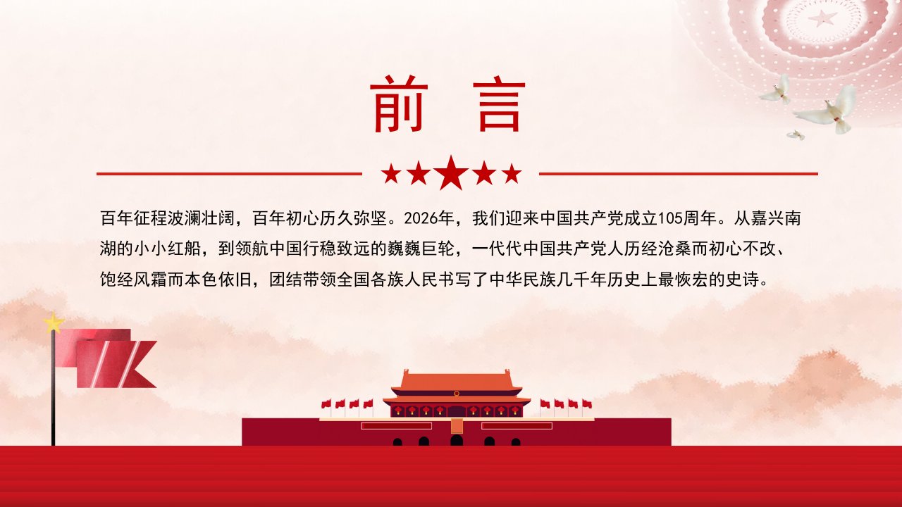 标题:2026微党课「党员学习ppt模板」初心如磐奋楫笃行庆祝中国共产党成立105周年党课ppt模板(含配套讲稿)