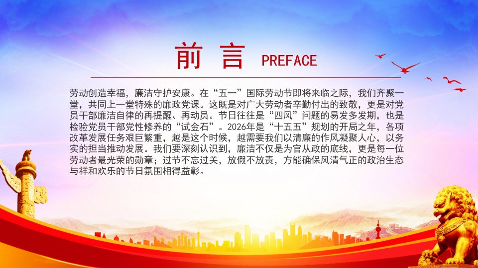 标题:2026微党课「党风廉洁ppt模板」清风拂五一廉韵润初心劳动节专题廉政党课ppt模板(含配套讲稿)