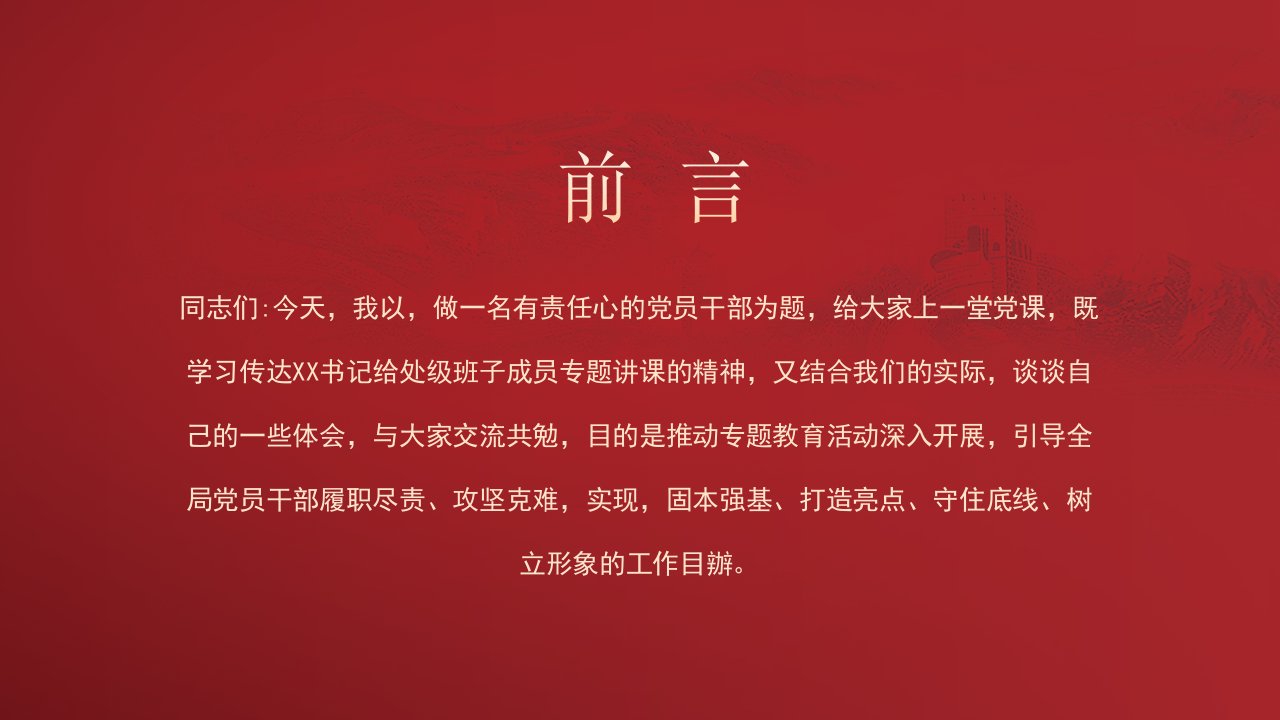 标题:2024微党课【PPT】做一名有责任心的党员干部PPT