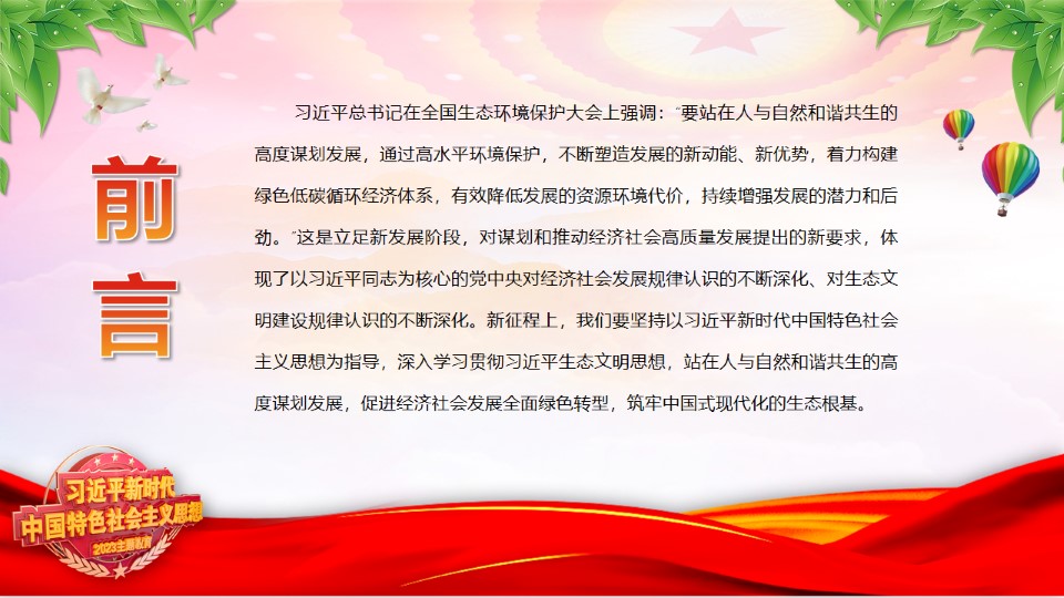 2024微党课2023站在人与自然和谐共生的高度谋划发展党课ppt模板(含配套讲稿)深入学习贯彻习近平生态文明思想专题党课课件