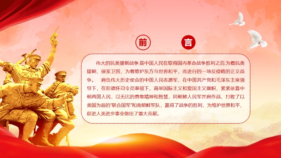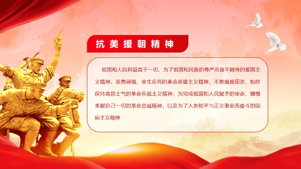 2024微党课抗美援朝精神专题ppt模板(带内容)中国精神系列党课ppt党员干部学习教育专题党课ppt模板